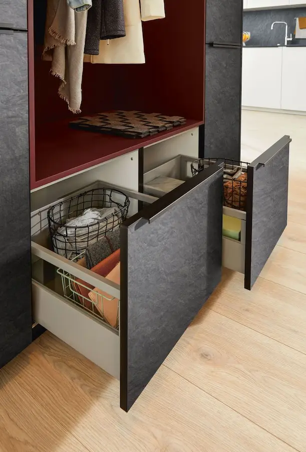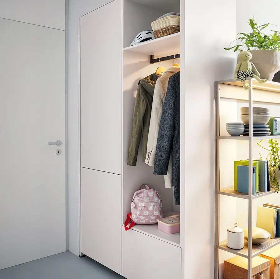 Le vestiaire contient des vestes, des manteaux, des chaussures, des parapluies, des bonnets, des cartables, des laisses et nous délivre du premier poids à notre retour à la maison. Il manque souvent d’espace, car le couloir ou le vestibule laissent en général peu de place. Pas étonnant, donc, qu’il faille offrir des solutions intelligentes…