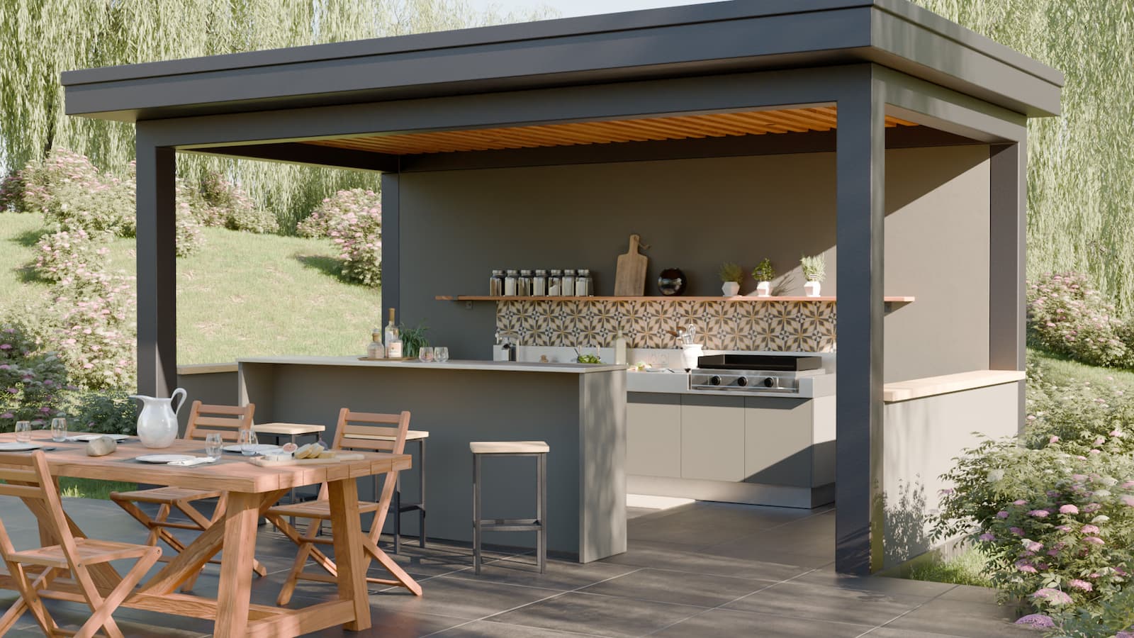 Bien évidemment, cette cuisine d’été de fabrication 100 % française est prévue pour résister aux intempéries.